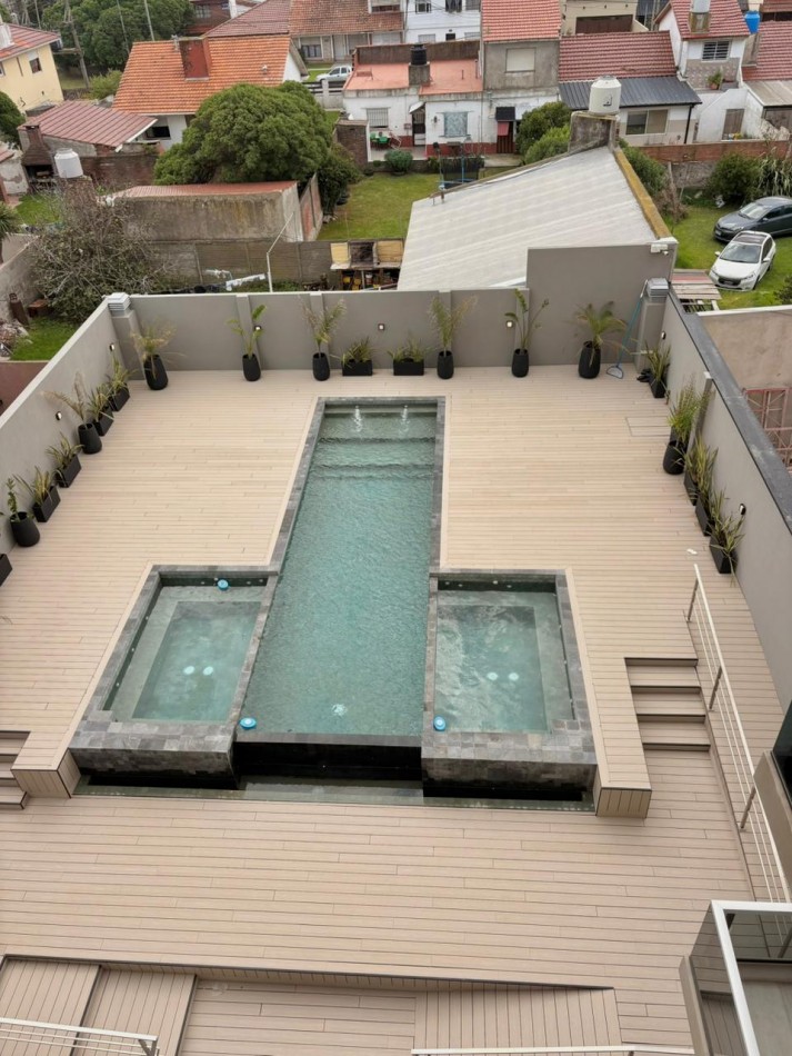 El edificio ofrece excelentes amenities, como pileta, gimnasio y quincho, ideales para disfrutar y complementar la vida diaria.