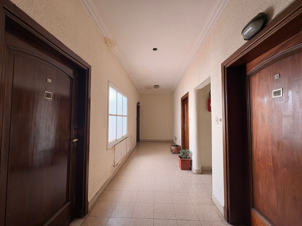 Ubicado en un edificio de pocos departamentos, de un solo piso y sin expensas, se presenta esta unidad tipo PH de amplias dimensiones para reciclar.