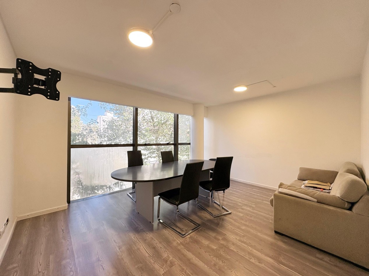 Cuenta con una superficie aproximada de 110 m², distribuidos en recepción, hall con doble ingreso, 4 despachos, sala de reuniones, cocina y baño completo. Dos de sus ambientes principales se orientan al frente, aportando excelente luminosidad.