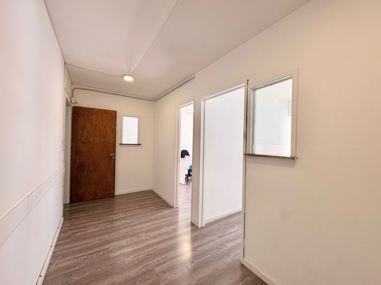 Cuenta con una superficie aproximada de 110 m², distribuidos en recepción, hall con doble ingreso, 4 despachos, sala de reuniones, cocina y baño completo. Dos de sus ambientes principales se orientan al frente, aportando excelente luminosidad.